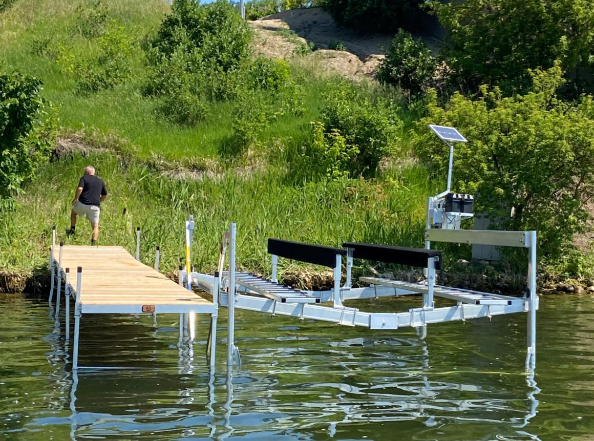 “Our custom dock connectors enables a one person install and removal, even enabling you to remove your dock in the fall